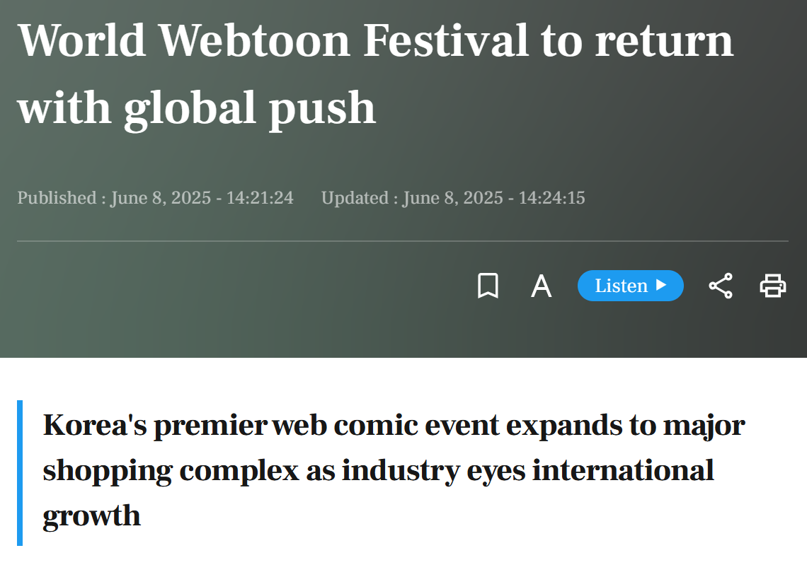 Interestingly, KOCCA already has a promotional and operational schedule for the 2026 World Webtoon Festival set up.