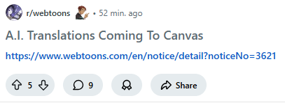 But it could also be said that WEBTOON is using AI to extract more ad revenue for CANVAS readers. Or that due to the inability for AI translations to be copyrighted, it muddies the waters in terms of pirate sites hosting AI translated webtoons.