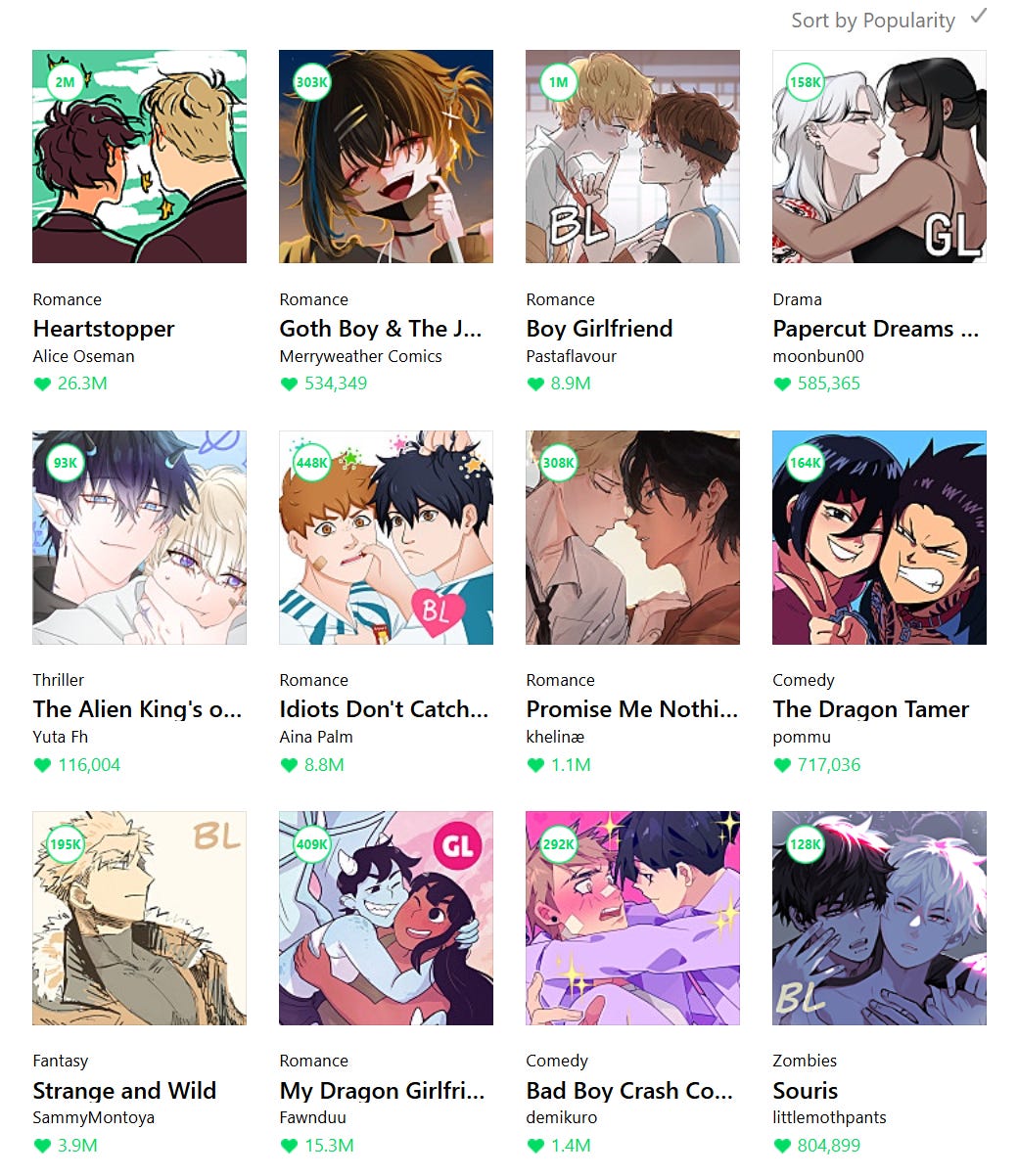 And the reason why creators on CANVAS went through the trouble of marketing titles as “BL” is simple, BL is a massively popular genre.