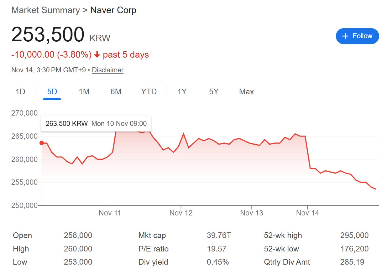 Naver’s stock in Korea has also taken a hit showing just how reliant the company’s fortunes may be on their subsidiary’s standing in the west.