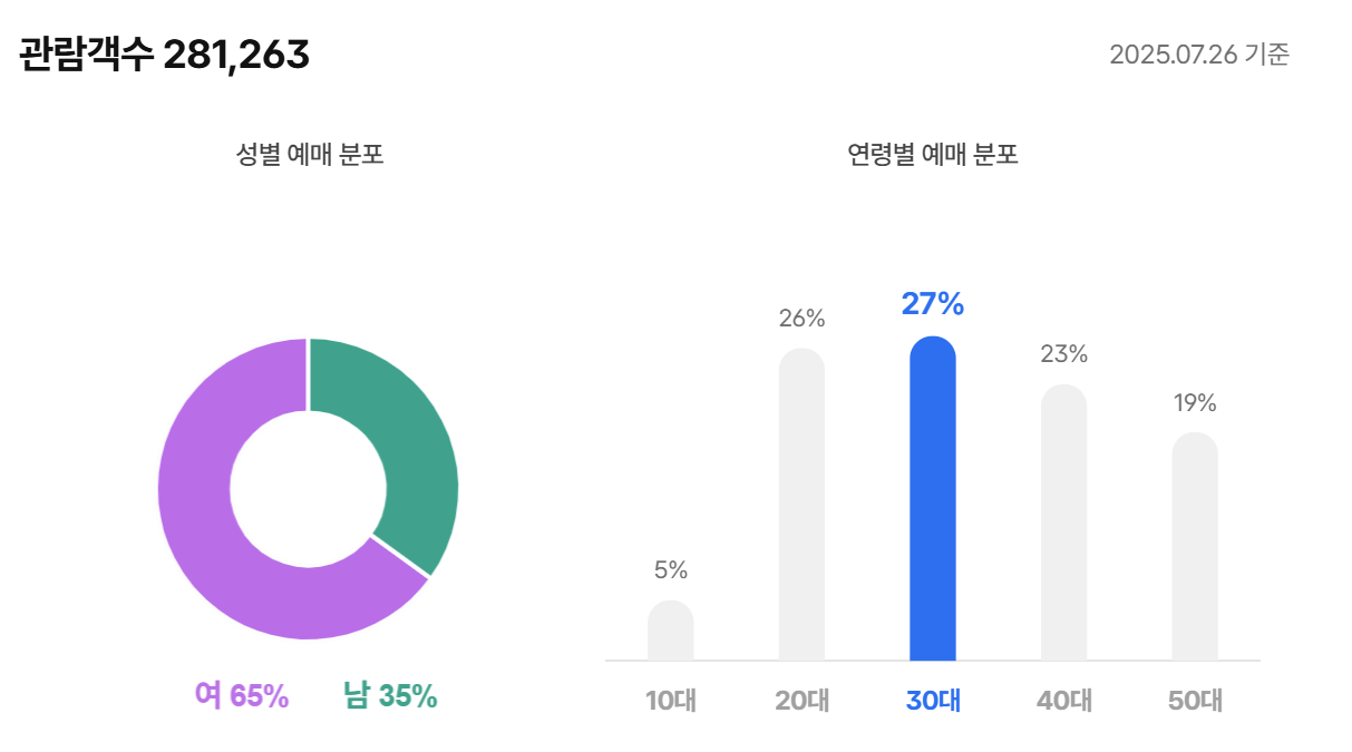 But, surprisingly, “Omniscient Reader: The Prophet” has a massive female audience with the vast majority of tickets going to women. Whether that’s due to the appeal of the IP or the actors, I’ll leave that to you to decide.